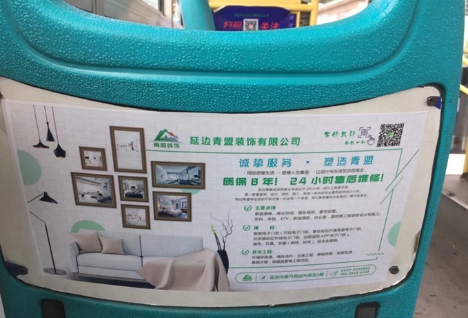 所在地区吉林省>延边>延吉市 媒体地址公交车内 乘客座椅背板